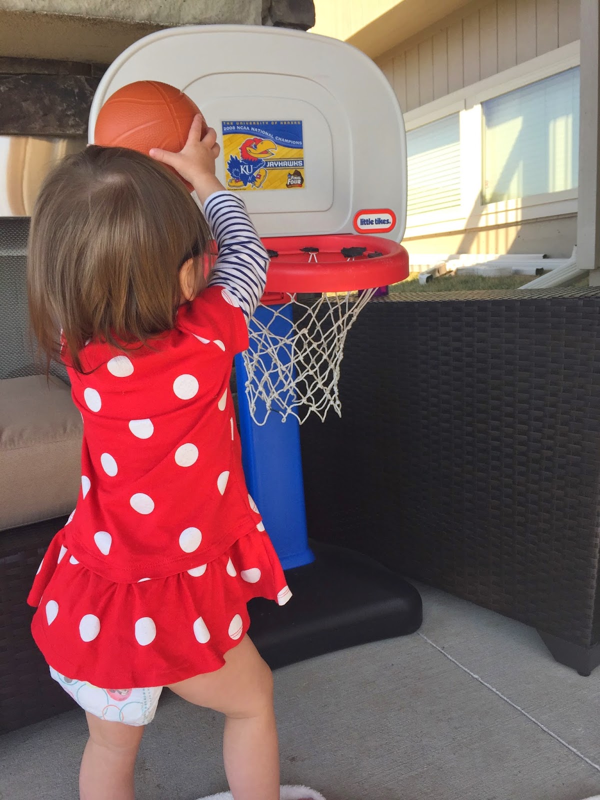 We played outside after naps and decided to watch the game outside on the beautiful day. I brought this goal out in hopes to keep Pippi entertained.